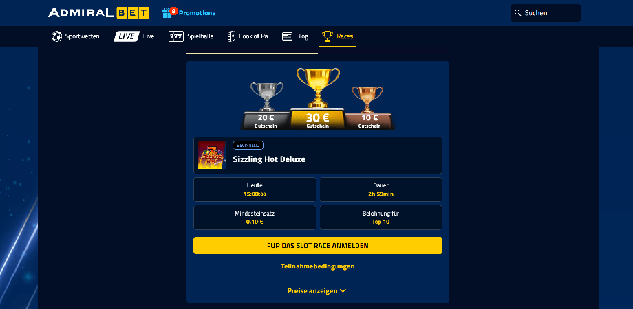 Admiral Casino bietet eine große Auswahl an Spielen, darunter Tischspiele, Spielautomaten, Live-Spiele und exklusive Spiele, um unterschiedlichen Spielvorlieben gerecht zu werden.