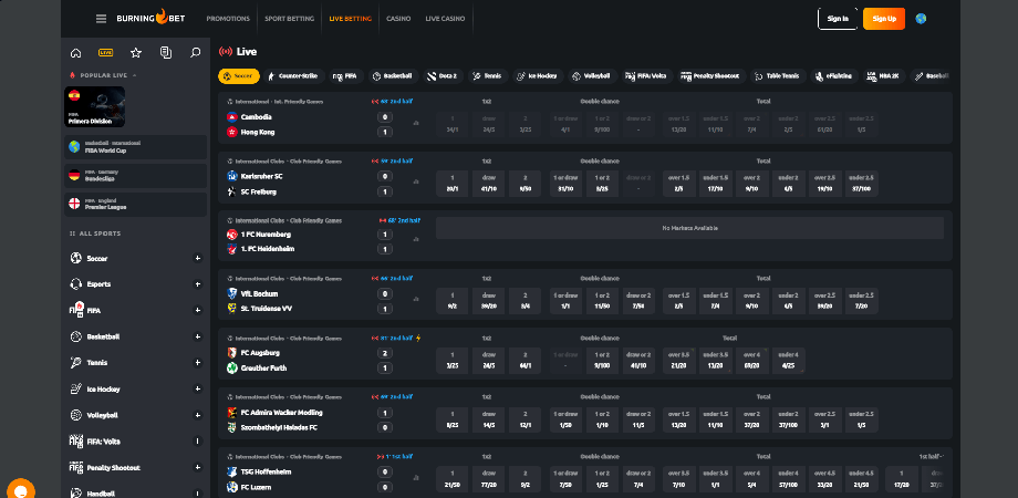 Sie können über diese Plattform auch auf bevorstehende und laufende Sportveranstaltungen wetten. Fußball, Basketball, Tennis, Rugby, Boxen, Mixed Martial Arts, Baseball, Volleyball, American Football und viele weitere beliebte Sportarten stehen zur Auswahl. Darüber hinaus sind auch zahlreiche eSport-Titel wie Dota 2, League of Legends, Counter-Strike: Global Offensive, FIFA, Rocket League, StarCraft, Rainbow Six Siege und andere verfügbar.