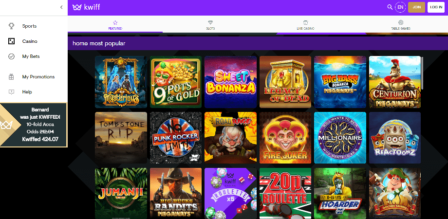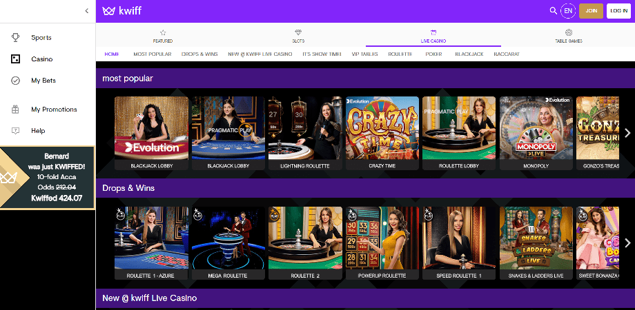 Kwiff Casino offers a wide variety of games, including slot machines, live dealer games, and sports betting. Live dealer games are popular for their authenticity, and sports betting is a primary focus of Kwiff Casino, providing a diverse range of sporting events for wagering.