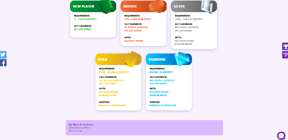 On the site, you will find the Bonus Terms and the Banking area just below the huge "Offers" and "Blog" tabs. The casino's blog features entertaining gaming trivia and helpful wagering advice. The casino's General Terms and information regarding its licence may be found at the bottom of the page. The site's design makes it so that users will not have to spend more than a minute hunting for the content they seek.