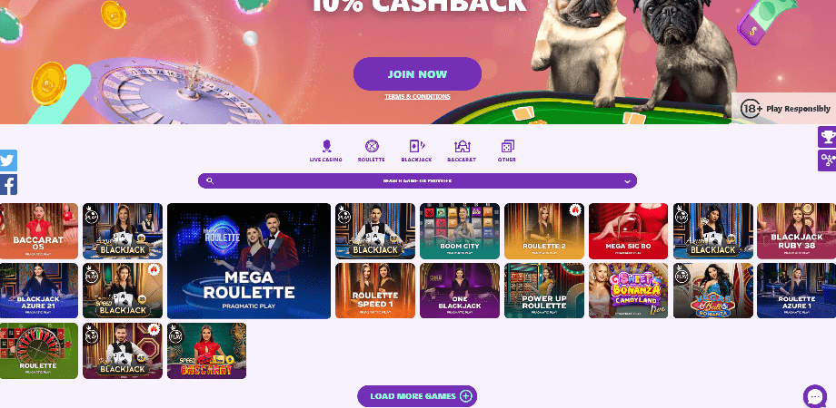 You may play the usual assortment of slots, table games like blackjack, baccarat, and poker, and even a few arcade games at Spin Pug. More than two hundred games are available in the live casino, including the high-stakes Lightning Roulette from Evolution Gaming.