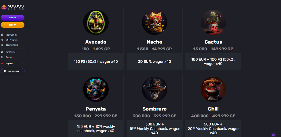 Tässä skenaario on, että sinun on täytettävä useita ehtoja ansaitaksesi bonuksen Voodoo Casinolta, joista merkittävin on 20 € talletusvaatimus, joka on melko vakio verrattuna muihin kasinoihin. Tämän tervetuliaispaketin kierrätysvaatimus on 35x, mikä on vakioehto kaikille kasinon bonuksille.
