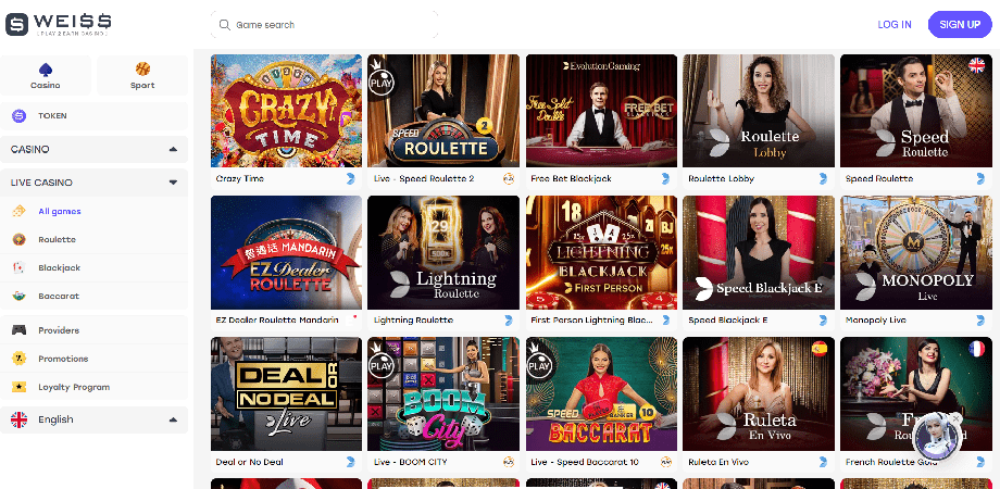 Weiss tarjoaa laajan valikoiman pelejä, mutta kolikkopelejä on eniten. esimerkkejä ovat The Wildos, Stormforged, Duel of the Dead Megaways, Treasure Snipers, Transylvania: Night of Blood ja monet muut.